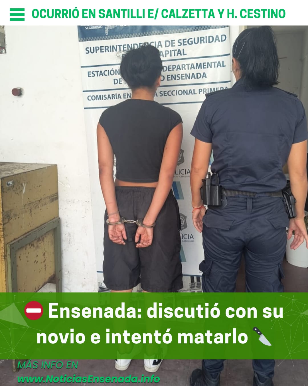 Un violento episodio ocurrió este martes en Ensenada, luego de que un joven de 19 años resultara gravemente herido con un arma blanca tras una discusión. Por el hecho fue aprehendida una mujer de 18 años, acusada de "tentativa de homicidio". El herido permanece internado.