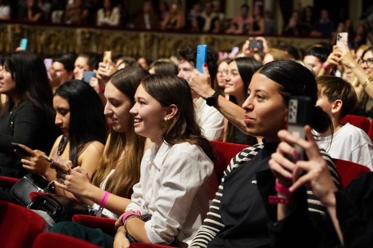 En simultáneo, un numeroso grupo de admiradores se reunió frente al Coliseo Podestá para seguir la clase magistral desde una pantalla especialmente instalada por el Municipio. Allí, el público vivió la experiencia en un clima de alegría, emoción y fervor cinéfilo.